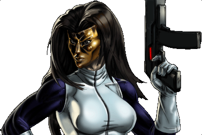 Working as the Big M (Leader of the Maggia) she comes into contact with Tony Stark/ Iron Man. She attacks one of Stark's facilities and as she flees the plane she is in crashes. During the crash her face is scarred. She is rescued by the gold obessed villain, Mordecai Midas. She begins to work for Midas as one of his henchmen. Midas has her wear a gold mask to hide her scarred face and because of this she begins calling herself, "Madame Masque".